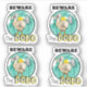 A funny cartoon illustration of a dodo. This is the national bird of Mauritius. The dodo is a unique, flightless bird. The funny text reads, beware the dodo. The bird is on a tropical island, with palm trees.