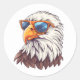Funny cartoon eagle with sunglasses classic round sticker
