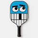 Funny cartoon face pickleball paddle with custom name initials. Cool Christmas or Birthday gift idea for pickleball lovers. Create unique paddles for player, fan, sports coach, team, mum, dad, friend, husband, wife, boyfriend, girlfriend, coworker, kids etc. Personalise with your own name, colours and monogram. Professional quality athletic game rackets for sporty men and women. Black trim colour example. White, tan or black grip / trim options. Funniest pickleball racket ever!