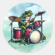 Funny Cartoon Frog Playing the Drums Classic Round Sticker