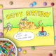 Funny Cartoon Happy Birthday Cat Postcard