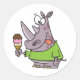 Funny Cartoon Rhino Eating Ice Cream Cute Animal Classic Round Sticker