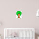 Cute funny cartoon tree with green leaves, a brown trunk, a happy smile and big round eyes.