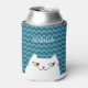 Funny Cartoon White Cat Face Doodle , Blue Chevron Can Cooler