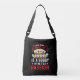 It's very roomy. The fabric is soft and flexible, and the strap is wide and adjustable to fit across the body. The printing is true to the photo.
