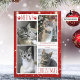 Funny Cat 4 Photo Collage MEOWY CHRISTMAS Red Holiday Card