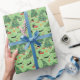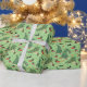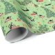 Funny Cat and Christmas Tree Trouble Green Wrapping Paper