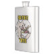 The product is a good size and came exactly as it was pictured.  The lid is not attached to the flask, which could be dangerous on drunken nights... The print came out surprisingly well and looks very sharp.  Would definitely recommend.