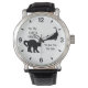 Funny cat designed watch offering two silhouette black cats with the wording "It's The Cat's House, We Just Pay The Bills" placed on the clock-face. The background colour has been set to white but can be changed to any colour you like. Great little gift for cat lovers. See in store for matching cat products.