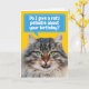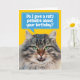 Typical cat with "cattitude" who is saying, "Do I give a rat's petootie about your birthday?" His surprising answer is, "Of course I do. What do you take me for? A cat?" Of course you can change the copy to whatever you want, if it's not what your cat would say. I was trying to keep it clean.