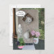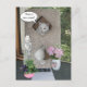 A customisable new address/I've moved post card. Missy has some flowers, a little door mat and a St. Francis statute. We love St. Francis. You can customise the text balloon, and on the back you can add info on your new address. You can also change the fonts. The font in the text balloon is Missy.