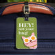 Crafted with a playful design in green and pink, it showcases a sassy cat that perfectly captures the essence of your travel spirit. The cheeky phrase "Hey! This is Not Your Bag!" adds a sarcastic twist, ensuring your luggage stands out in any crowd.