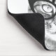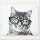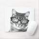 Funny cat photograph mouse pad design. Cute gift idea for cat lover / cat person. Customise it with your pet name. Black and white kitten wearing nerdy glasses.