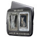 Laptop sleeve featuring a dark faux leather design with metallic overlay and your own custom photos (optional) and (funny or other) texts. Beautiful as a gift for him.