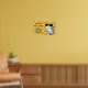 Funny Cat Poster, “Cartoon cat wearing sunglasses with text: ‘I’m Not Lazy, I’m in Energy-Saving Mode’. Bright yellow background with doodled fishbones and paw prints.