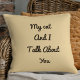 This funny and stylish cat-themed beige pillow features the quote, “My Cat And I Talk About You” in a modern typography design. A perfect personalised gift for cat lovers, besties, roommates, and pet moms, it’s customisable with your own name or message. Great for cosy couches, bedrooms, and minimalist spaces. Add humour and feline charm to your home decor. Ideal for birthdays, housewarmings, or gifts under $50.