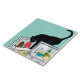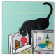 A clever black cat helps her or himself to a Dairy snack in the open refrigerator. My artist life was creating narratives about cats and cat life in the Crafts markets for many years. In this series of art tiles, I return to my terry johnson tiles. My love of cats makes them my favourite subject foe my art making.