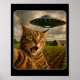 Funny Cat Selfie With Ufo Alien Meme Poster