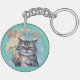 Funny Cat Sip Happens Key Ring