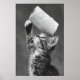 Funny Cat Toilet Paper Roll Art, Whimsical Poster