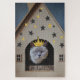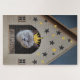 This puzzle design features image of a serious cat wearing a whimsical golden textured crown while looking outside from house decorated in black and gold glitter stars.This listing will work for all sizes except the 20" x 20" which is available in the following link: https://bit.ly/2Yyx7Cn