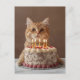 Funny cat with birthday cake postcard