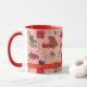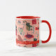 Funny Cat in Christmas Boxes Photo Mug features an hilarious pattern of cats in all colours frolicking in pretty holiday wrapped boxes. Cat loves are sure to delight in the pet humour. Make it more special by adding the name of their favourite cat. A festive red bow and ribbon gives templated for a custom message from the cat to his/her beloved. Create a holiday gift to be cherished this Christmas and every Christmas to come. Available in 4 colours