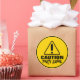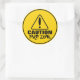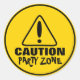 Funny Caution Sign Party Zone Round Sticker. Customisable yellow round stickers with fully customisable texts "Caution" and "Party Zone" and triangle with exclamation mark warning. This cool party zone warning sticker is fully customisable, add your texts and images!