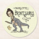 Funny Charlotte Bronte Saurus Dinosaur Book Reader Round Paper Coaster