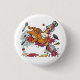 A round pinback button featuring a funny orange chef cat in a messy kitchen disaster scene. Perfect for adding humor to backpacks, jackets, or everyday accessories.