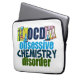 Funny chemistry teacher gift that reads OCD Obsessive Chemistry Disorder next to science beakers full of chemicals for an experiment. A cool chemistry major present for a scientist.
