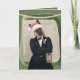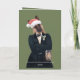 What could be more adorable than a well dressed, German Shepherd dog spreading around some Christmas cheer? Nothing! This stylish guy looks like he is ready for a trendy holiday party with his swanky suit and debonair attitude, while a santa hat sits jauntily atop his head. He holds a charming lantern to guide you to the festivities and has a sprig of greenery in his lapel. The greeting inside can be kept the way it is or customised to better fit your needs. Truly, a fun and unique card, especially for the dog lovers in your life!