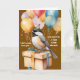 Invite guests with a whimsical watercolor chickadee perched on a present, wearing a birthday hat, with balloons floating behind. This humourous birthday party invitation adds a playful touch with observational humour, perfect for bird lovers and anyone who enjoys a lighthearted celebration! generativecontent.
