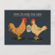 Funny Chicken Easter Egg Hunt Cartoon Blue Postcard