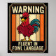 Funny Chicken Rooster Humor Warning Fluent In Fowl Poster
