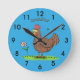 Funny chicken rustic whimsical cartoon round clock