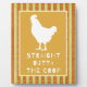 Fun farmhouse tabletop plaque features chicken silhouette with "straight outta the coop" text and vintage striped background