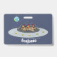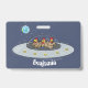 Funny chickens in space cartoon illustration ID badge