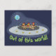 Funny chickens in spaceship cartoon postcard