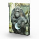 A cute chimpanzee who has a CD but unfortunately no CD player.