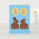 Chocolate Easter bunnies that sort of sound like an old married couple. One with a bite out of their butt says, "Does my butt look smaller to you?" while the other with their ears bitten off says, "What?? I can't hear a word you're saying."