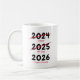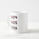 Funny novelty christmas mug featuring a simple white background that can be changed to any color, the humorous saying "2021 crappy, 2022 still crap, 2023 fingers crossed".