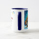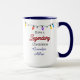 A funny Sasquatch personalized Christmas coffee mug with a comic book style pop art sasquatch smiling with a Santa and Christmas lights on.