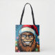 A funny Sasquatch personalized Christmas stocking with a comic book style pop art sasquatch smiling with a Santa and Christmas lights on.