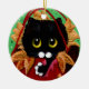Funny Christmas Black Cat Art Creationarts Ceramic Tree Decoration