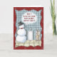 A cartoon Holiday greeting card with a cartoon of a Snowman and a rabbit using the public facilities. The inside of the card simply reads: “Happy Holidays!”
