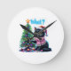 Funny Christmas Cat What with Tree Sticker Round Clock