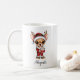 Festive Chihuahua in Christmas plaid pyjamas and reindeer antlers. Personalised mug for the holidays. Great gift for kids on Christmas morning or dog lovers gift idea.