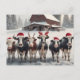 Funny Christmas Cows in a snowy pasture in front of a red barn