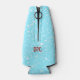 The background has white snow speckles. The blue background colour can be "Customised" to whatever shade you like. The design appears on the front of the cooler, and your monogram is on the front and back.